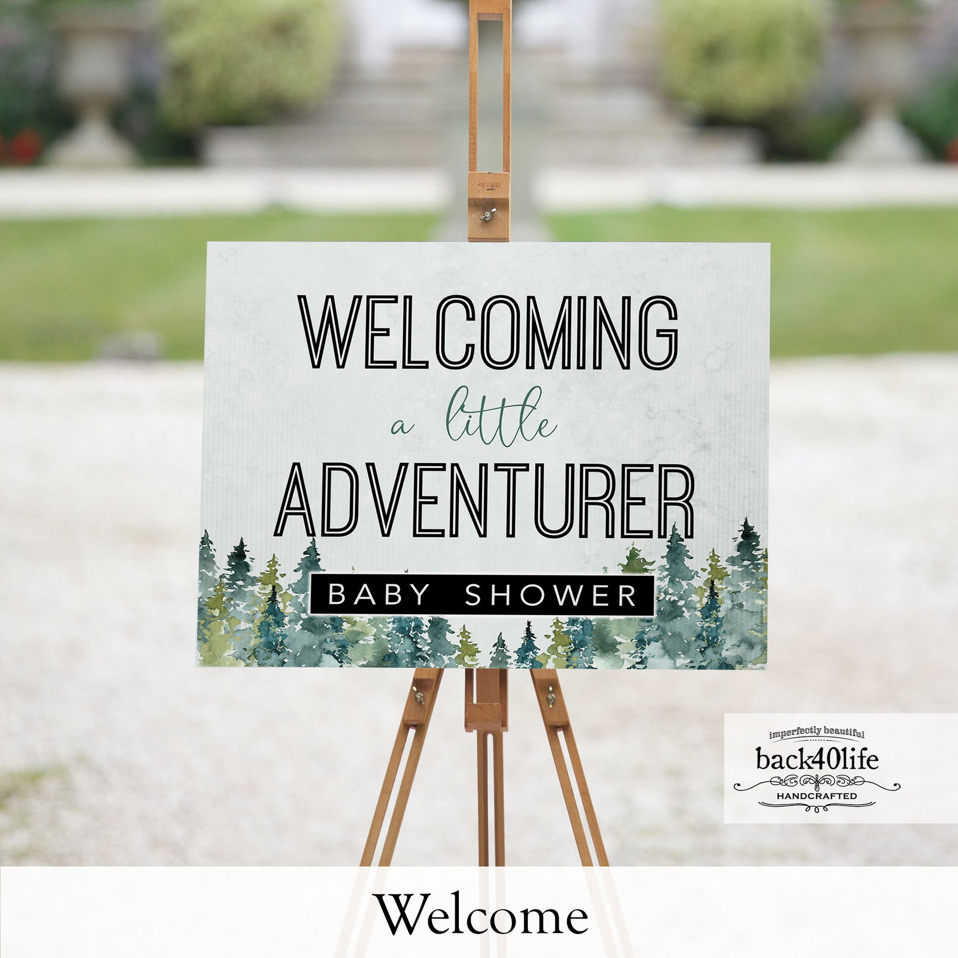 Baby Shower Sign - Little Adventurer Forest Trees - Welcome Directional Parking Event (K-091u)