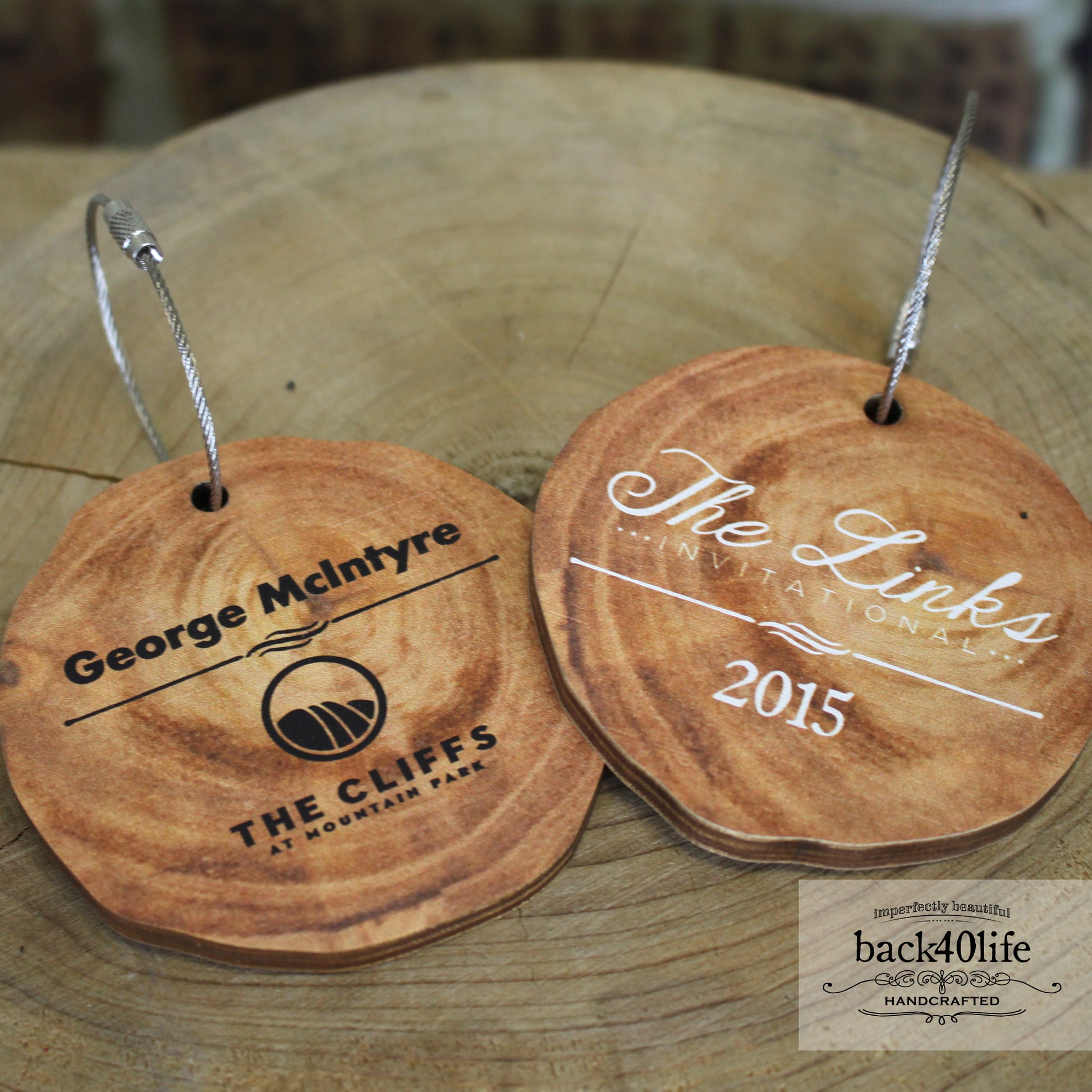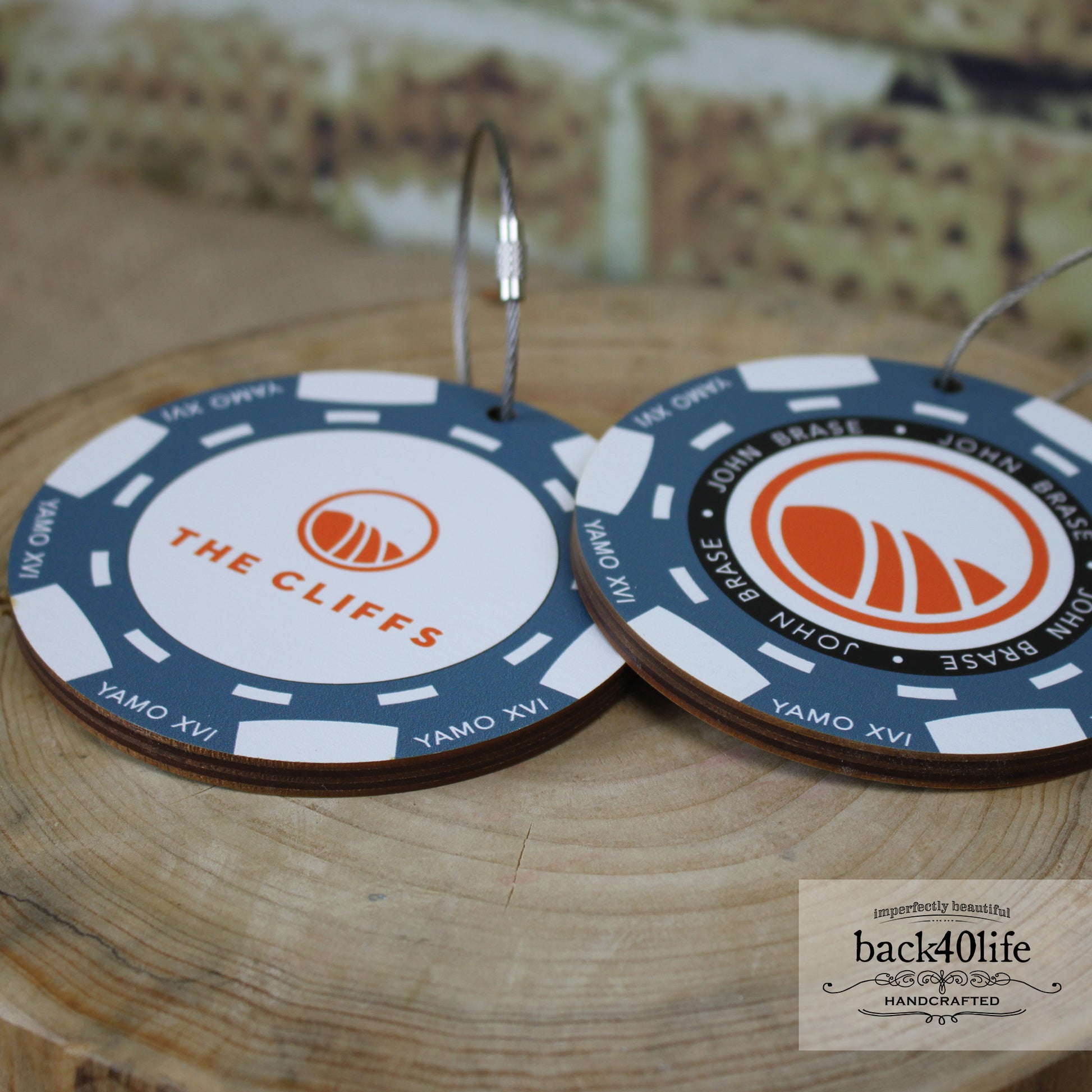 Bag tags include the club or tournament themed layout with aircraft cable tie to ensure it stays securely attached to the bag. Available in an endless variety of shapes and sizes with different options to fit your event.