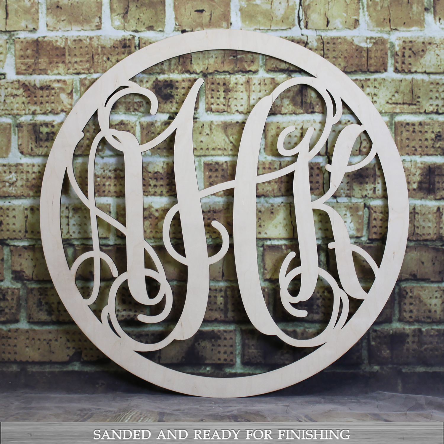Circle Vine Monogram Unfinished Wood Letters Cutout DIY Decor Nursery (LC-03cst)