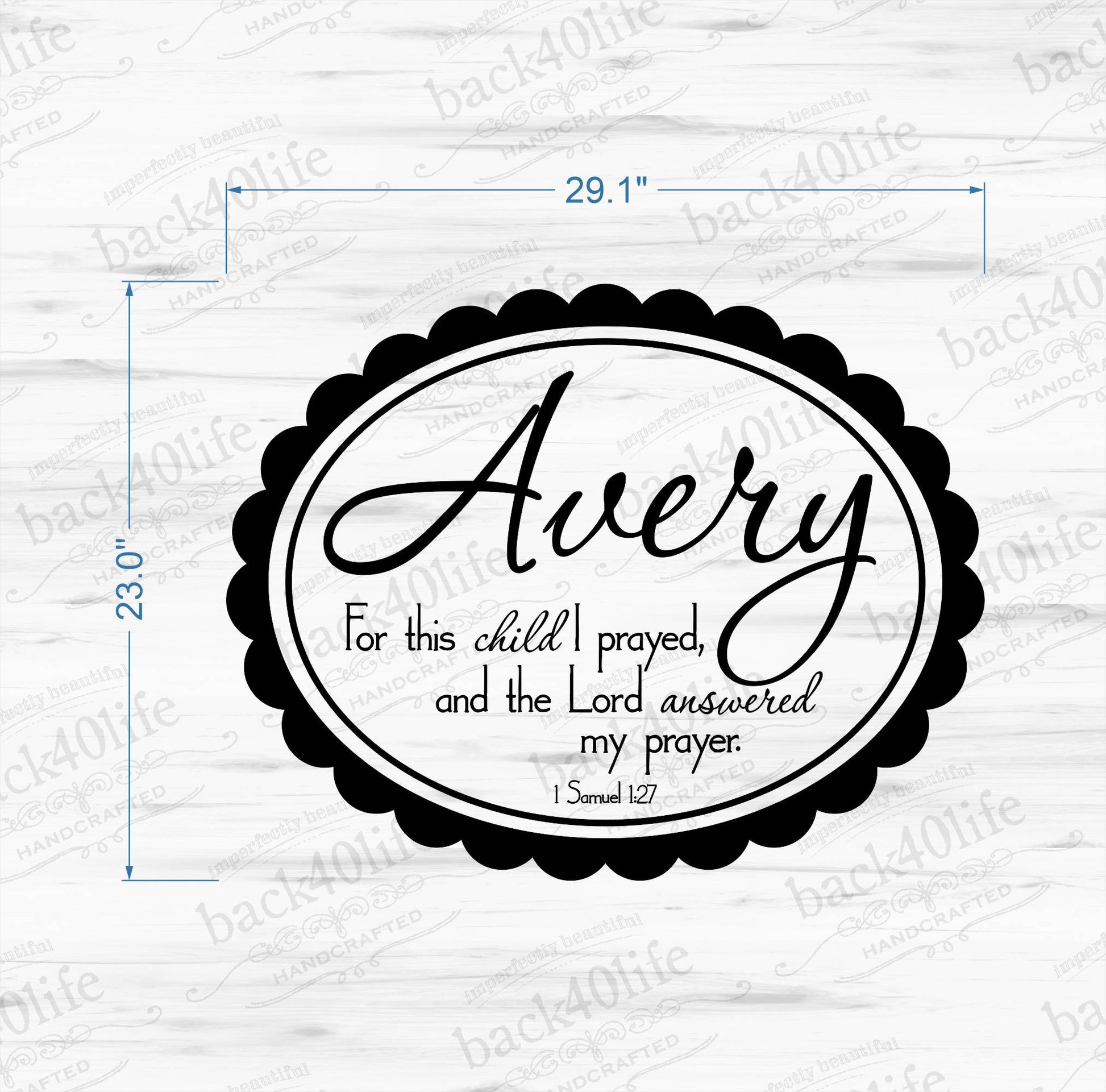 For This Child I Prayed - 1 Samuel 1:27 Scallop Oval with Name Vinyl Wall Decal (B-034)