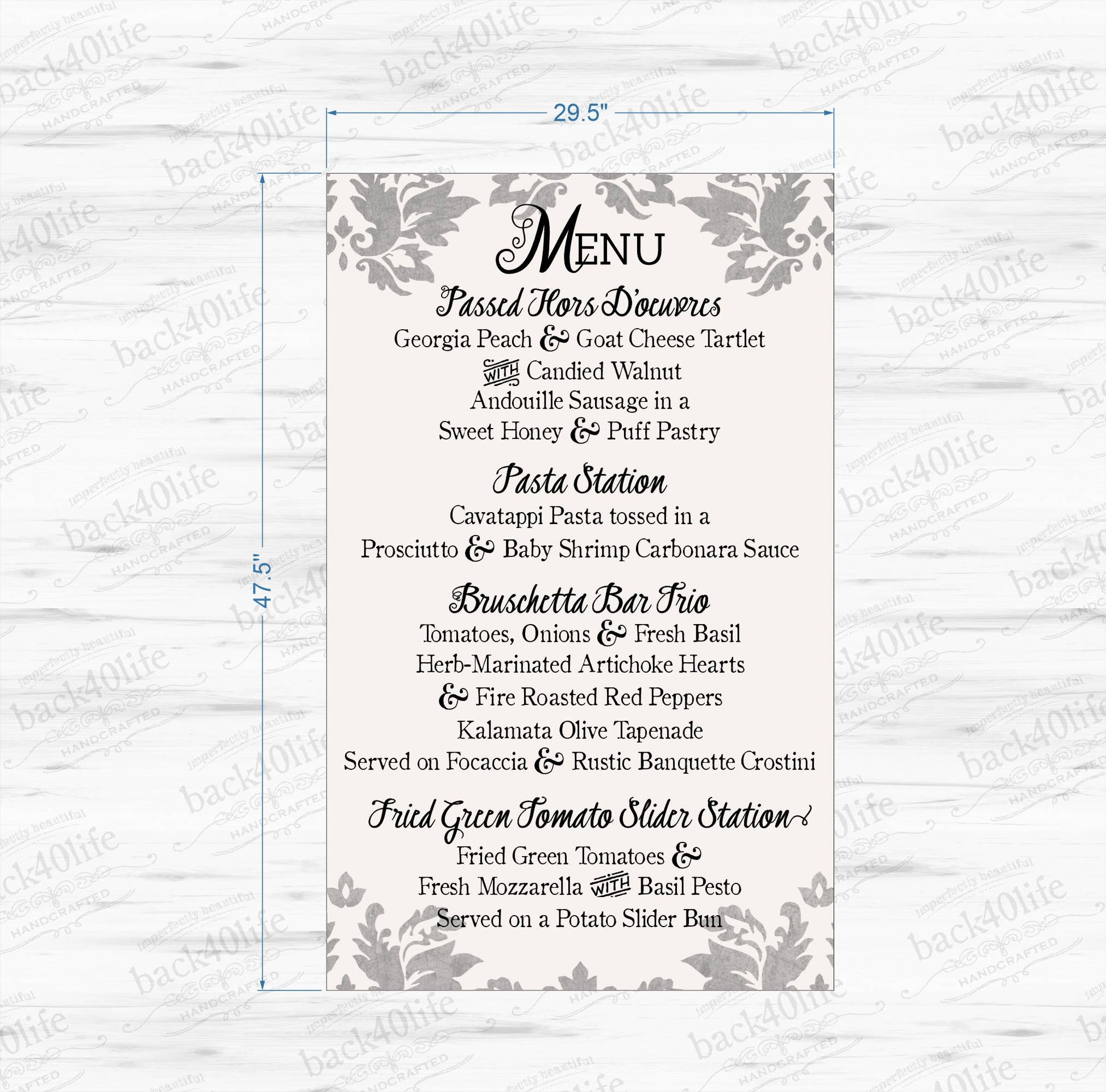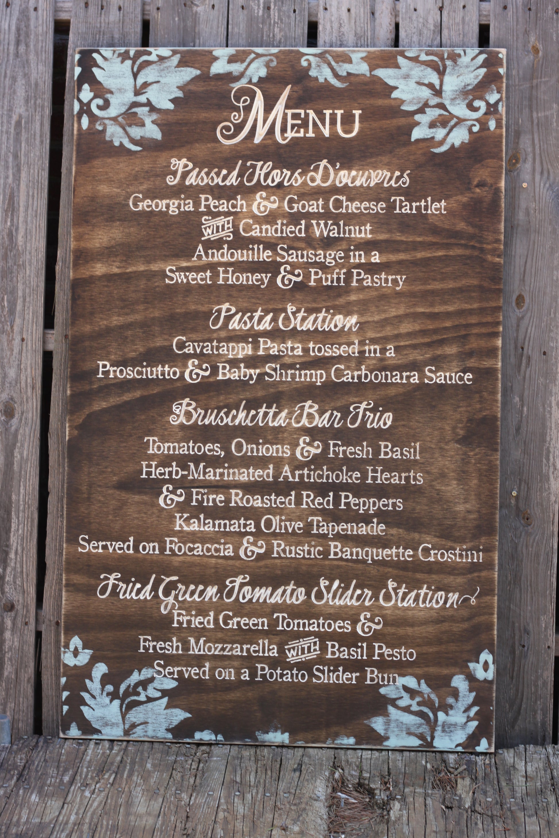 Wedding Menu with Painted Flourish Painted Wooden Sign (W-043a)