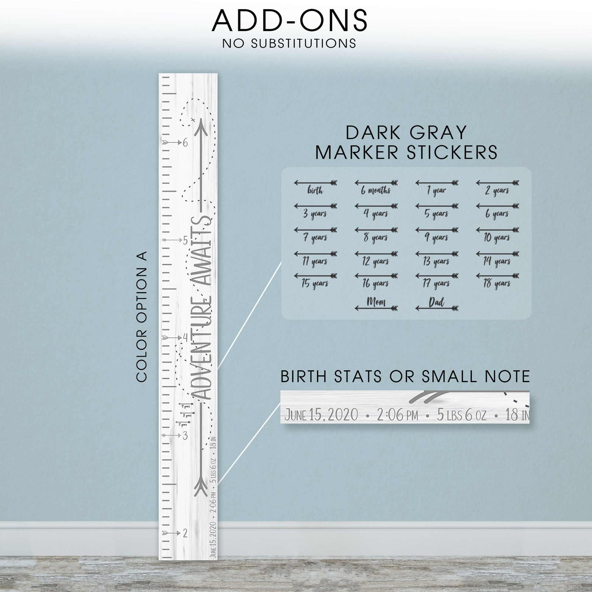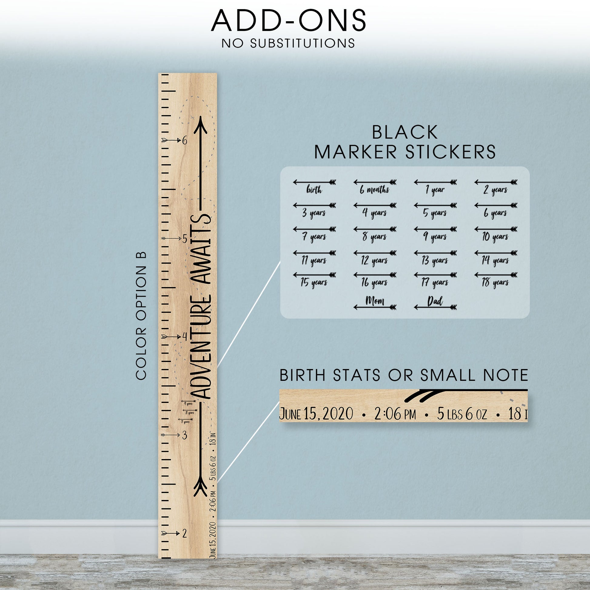 Personalized Wooden Kids Growth Chart - Height Ruler for Boys Girls Size Measuring Stick Family Name - Custom Ruler Gift Children GC-AA Adventure Awaits